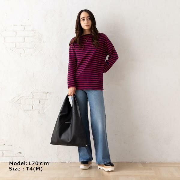 マリンテイストあふれるボーダー柄の長袖カットソー。デコルテをすっきりと見せてくれるボートネックがポイントです。ほど良い肉厚感のある生地で、着心地も抜群。スカートからパンツスタイルまで幅広くマッチします。