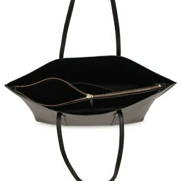 シックなベースカラーに刻まれた、きらめくブランドロゴが目を惹きます。仕切りのついたメインコンパートメントと外ポケットが付属し、小物の整理もしやすい仕様。あえてボタンなどをつけないシンプルな間口で視認性も良く、デイリーに使いたくなる一品です。