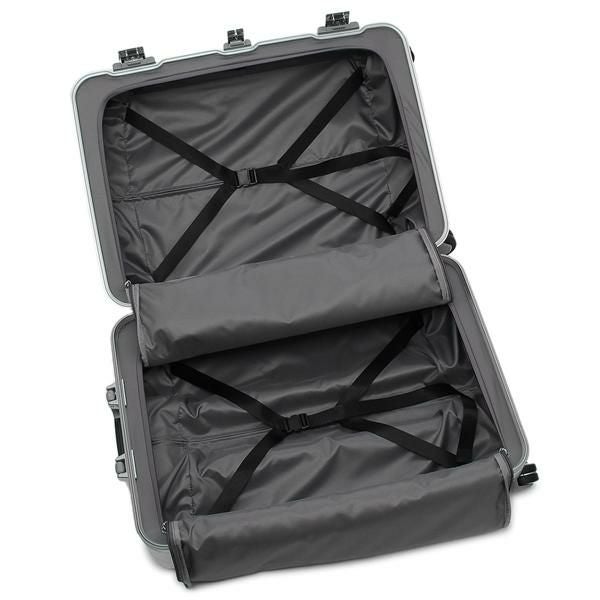 スタイリッシュさあふれる立体的なデザインがポイント。強度のあるフレームデザインに加え、TSAロック対応のクリップ式の開閉を採用しました。広い収納スペースに加え、取り外しできるパネルをセットした便利な設計です。