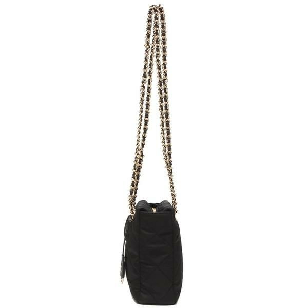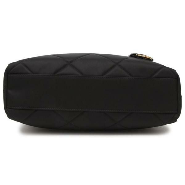 プラダを象徴するリナイロンを使用したキルティングデザインのトートバッグ。フロントに配したトライアングルロゴとチェーンハンドルが気品を放ちます。間口はファスナー開閉で中身の飛び出しを防止。適度なサイズ感なのでデイリーユースにおすすめです。