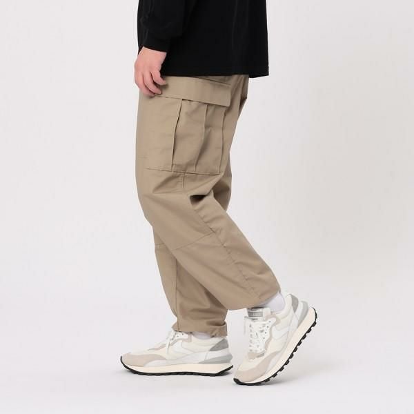 ストリートやアメカジスタイルにぴったりなカーゴパンツ。ウエストの両サイドに備えたアジャスターや、裾のドローコードでフィット感を調節できます。ゆとりのあるワイドシルエットでストレスフリーに着用可能。軽くてハリのある質感もポイントです。