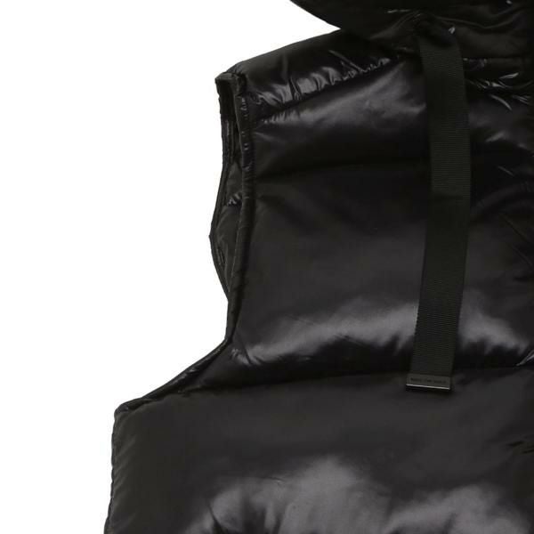 フード部分にアイコニックなロゴをあしらったダウンベスト。上品な素材の光沢感が、装いに洗練された印象を与えます。フロントは上下どちらからでも開閉できるダブルファスナー仕様。落ち着いた色使いとデザインで、さまざまな装いにマッチします。