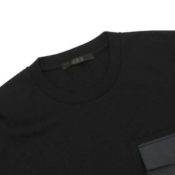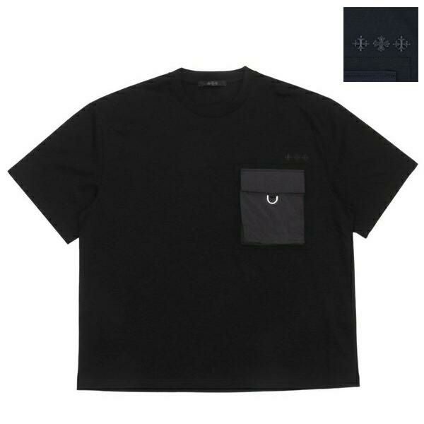 やや詰まり気味のクルーネックで、首周りをすっきりと見せてくれる半袖Tシャツです。胸元のポケットにはD字のメタルパーツをあしらい、ミリタリーライクなアクセントをプラス。ゆったりとしたサイズ感でカジュアルに着用でき、リラックスタイムにもマッチします。