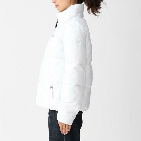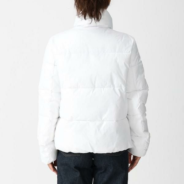 コーデを華やかに演出してくれる明るいカラーが魅力です。スタンドカラー仕様で、首周りを温かく包み込みます。胸元にアイコニックなロゴを添えて、アクセントをプラス。ボリュームがありながらも着丈が短めなので、スタイルよく着こなせます。