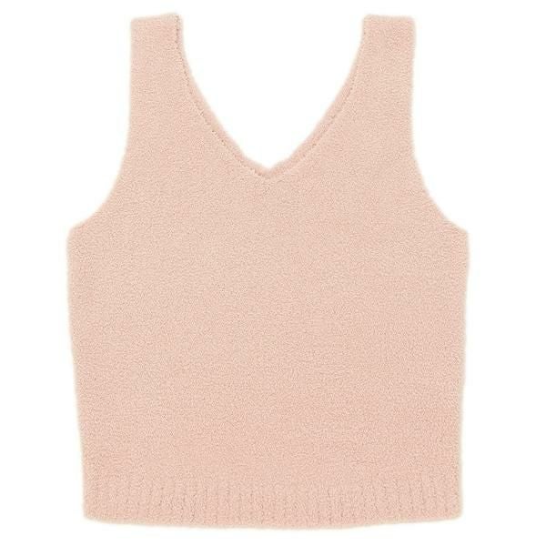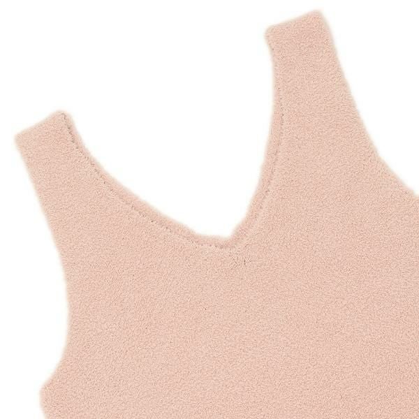 肌触りの良い柔らかなモコモコ素材を使用したタンクトップ。胸元の開いたVネックデザインで、すっきりとした印象を与えます。カーディガンやパーカーを羽織って、レイヤードコーデとしてもおすすめ。ご自分用にはもちろん、プレゼントとしても喜ばれます。