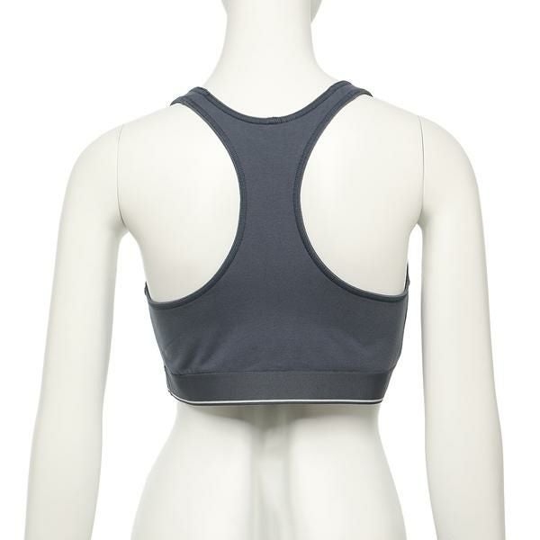 落ち着きのあるカラーにロゴとラインでアクセントを加えたブラレットです。ノンワイヤーで締めつけ感が少なく、楽に着用できるのがうれしいところ。スポーツウェアとしてはもちろん、お家でのリラックスタイムにもおすすめです。