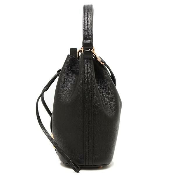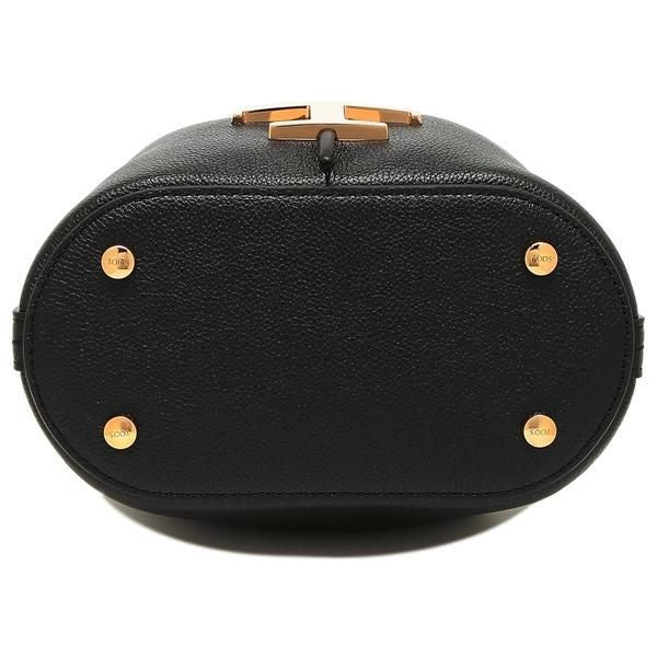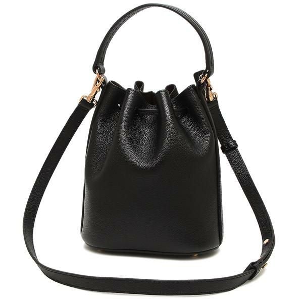 シックなカラーにロゴ入りのメタルモチーフが映えるハンドバッグ。開閉はドローストリングタイプで大きく開き荷物の出し入れもスムーズに行えます。地面に置いても汚れにくい底ビョウ付きもポイント。ちょっとしたお出掛けに活躍します。