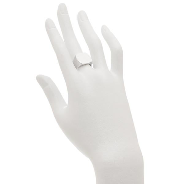 モダンな雰囲気が漂うシンプルなデザインのリング。ツヤのあるベース部分に、サテン仕上げのテーブルトップでコントラストを効かせました。程よいボリュームがあり、これ1つで手元をおしゃれに演出してくれます。