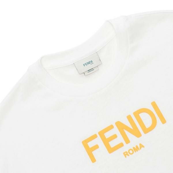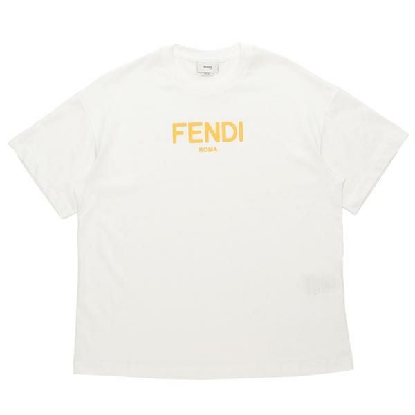 フェンディ 子供服 Tシャツ カットソー ホワイト イエロー キッズ FENDI JUI137 7AJ F0TU9