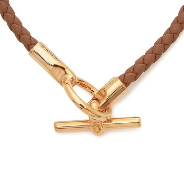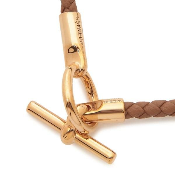 エルメス ブレスレット バングル グレナン ゴールド ピンクゴールド金具 ブラウン レディース HERMES H071681 FO 37