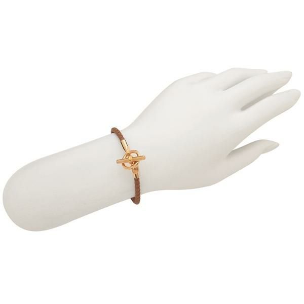 エルメス ブレスレット バングル グレナン ゴールド シルバー金具 ブラウン レディース HERMES H071681 FP 37