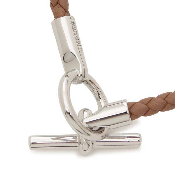 エルメス ブレスレット バングル ジャンボ H シルバー金具 ナチュラル ブラウン シルバー メンズ HERMES H077314 FP 23