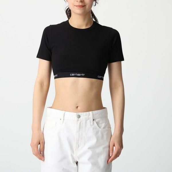 カーハート Tシャツ カットソー Carhartt WIPウイメンズスクリプトクロップトップ クロップド丈 ブラック レディース I033222 089 2025秋冬新作