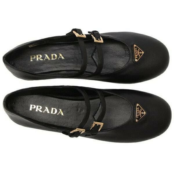 プラダ バレエシューズ フラットシューズ バレリーナ トライアングルロゴ ブラック ゴールド レディース PRADA 1F794N 038 F0002 F005 2025秋冬新作