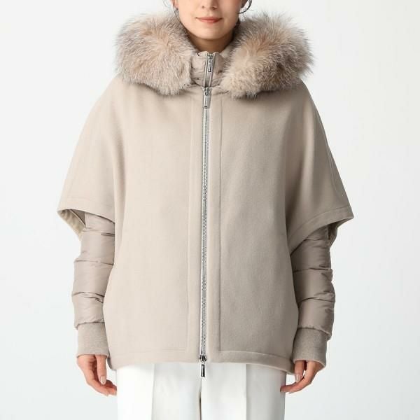 ムーレー ダウンジャケット コート ペガソ ショート丈 ケープ ベージュ レディース MOORER MODGI300009 U0215 2025秋冬新作