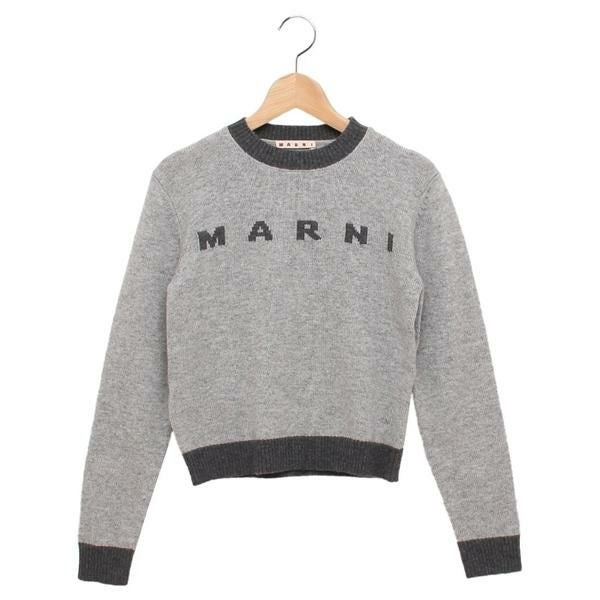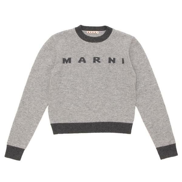 マルニ ニット セーター 子供服 カシミア クルーネック ロゴ レディース 大人も可 グレー キッズ MARNI M00993 M00ML 0M923 2025秋冬新作
