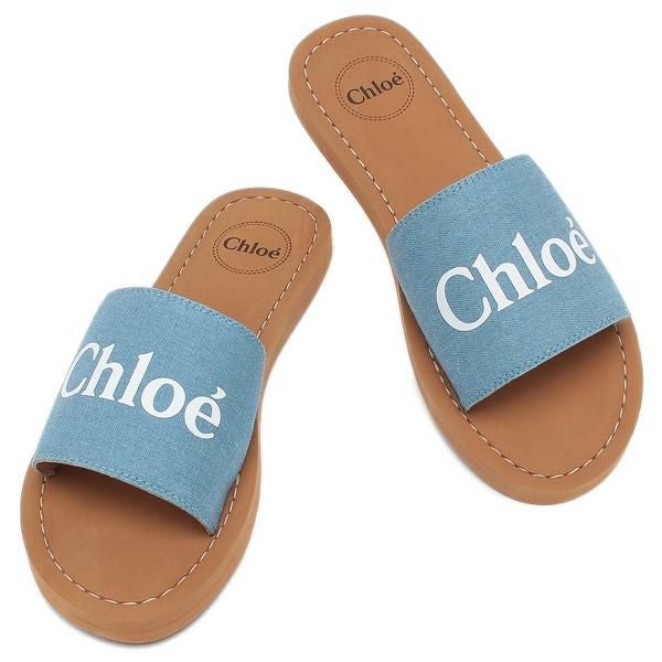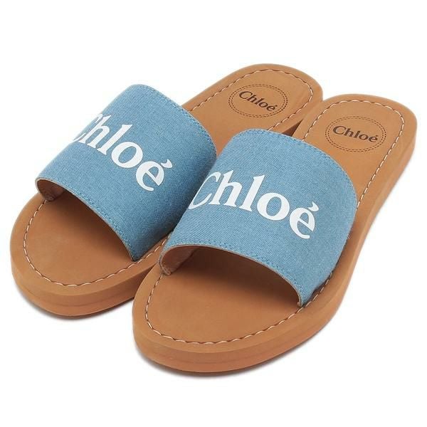 クロエ キッズシューズ スライド フラットサンダル ブルー キッズ CHLOE C20185 Z10