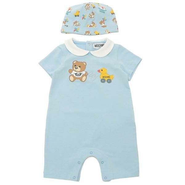 モスキーノ ベビー服 ベビー用品 テディベア ロンパース 帽子 ブルー キッズ MOSCHINO MMY056 LBA00 40304