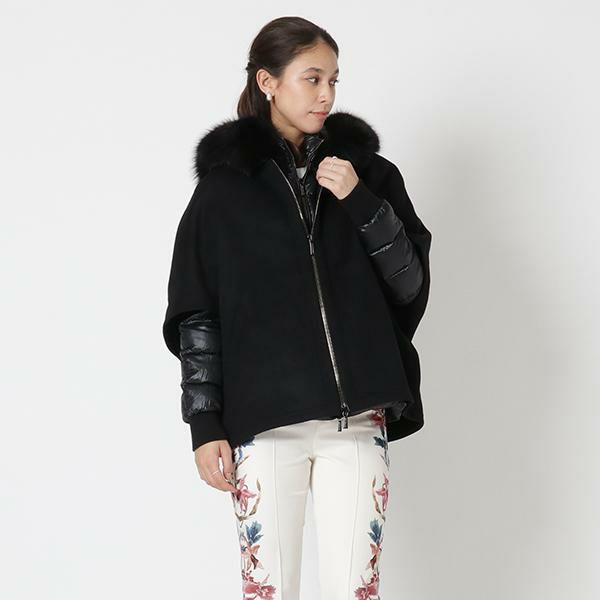 ムーレー アウター ダウンジャケット コート ペガソ ショート丈 ケープ ブラック レディース MOORER MODGI300009 TEPA348 U0001