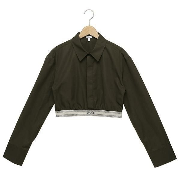 ロエベ シャツ ブラウス クロップド シャツ ロゴ カーキグリーン レディース LOEWE S359Y05XAX 4153