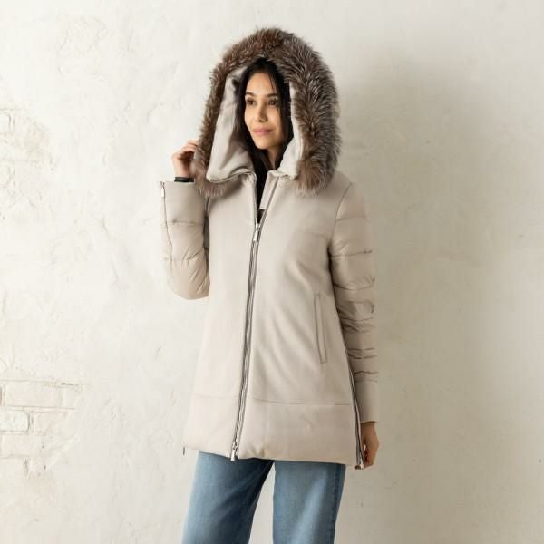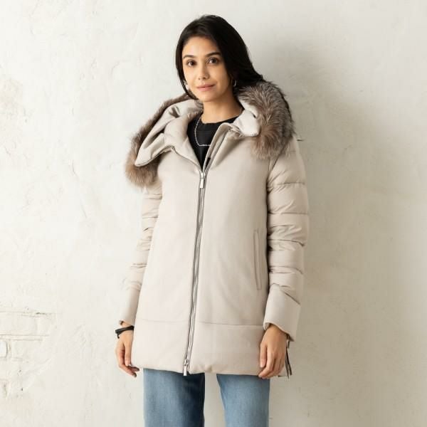 ムーレー ダウンジャケット コート フリージア ショート丈 Aライン ベージュ レディース MOORER MODGI300007 TEPA209 U0105